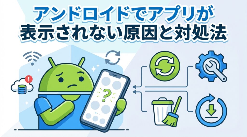 アンドロイドでアプリが表示されないときは、まず「どこに表示されないのか」を切り分けるのが近道です。アプリ一覧に表示されないAndroidなのか、アプリアイコンが表示されないAndroidなのか、Androidホーム画面に表示されないだけなのかで、原因がかなり変わります。